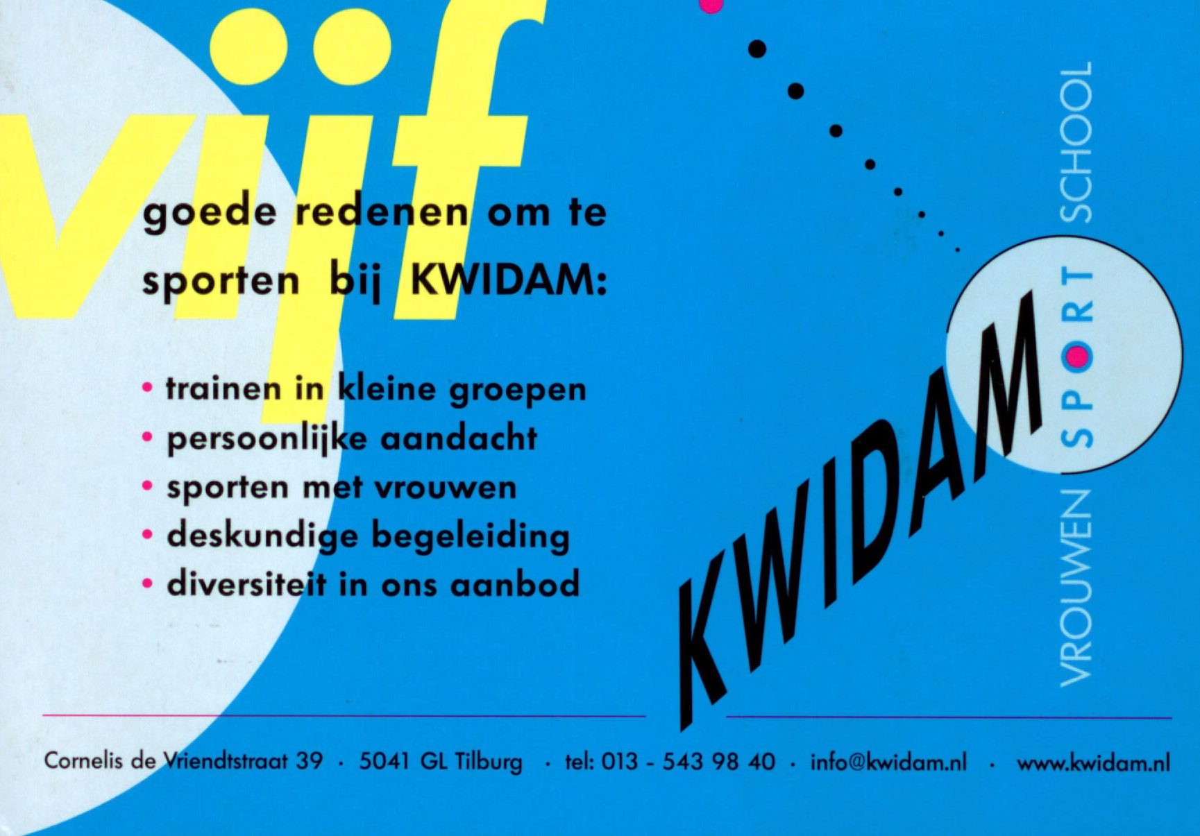 De allereerste vrouwensportschool van Nederland was gevestigd in Tilburg. In 1988 begon Kiek Boelaars met vrouwensportschool Kwidam. Een sportschool speciaal voor vrouwen was eind jaren tachtig een unicum.