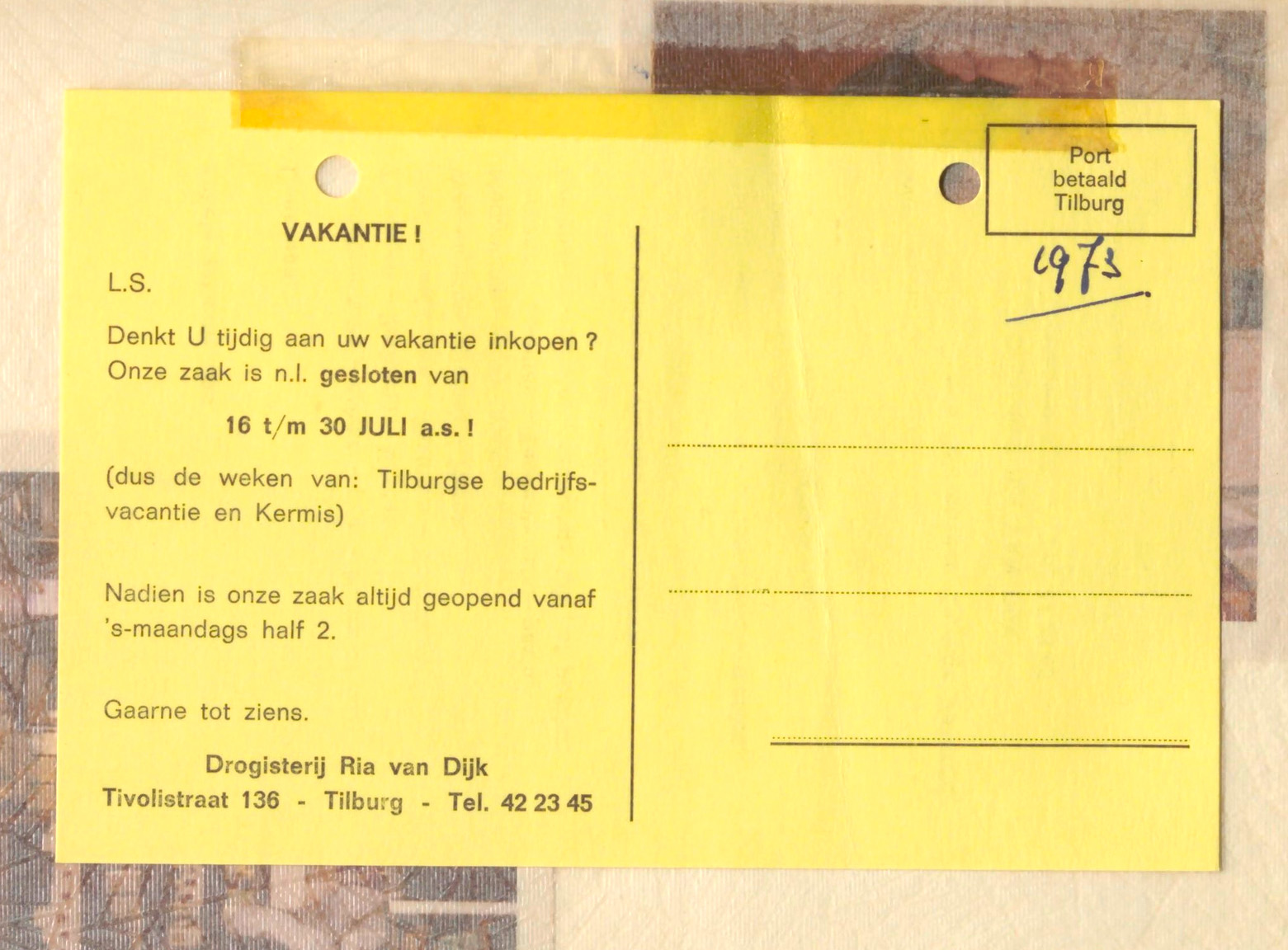 De drogisterij is een bloeiende onderneming met de zelfstandige en (onbedoeld) feministische Ria als middelpunt. Zo verkoopt ze als een van de eersten in Tilburg condooms. Weliswaar stiekem vanonder de toonbank, maar toch. Dit is volgens familieleden kenmerkend voor het eigenzinnige karakter van de Tilburgse onderneemster.