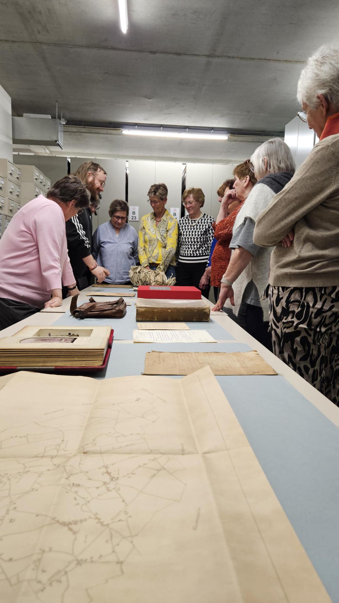Donderdag 4 april bracht het vrouwengilde Berkel-Enschot een bezoek aan Regionaal Archief Tilburg. Na ontvangst in de studiezaal en een welkomstwoord door Pauline van Hezik (hoofd archief) werd de groep in drieën verdeeld. Er waren drie programma-onderdelen, en na elk segment wisselden de groepen door, zodat iedereen aan het einde van de middag alle onderdelen had bijgewoond.