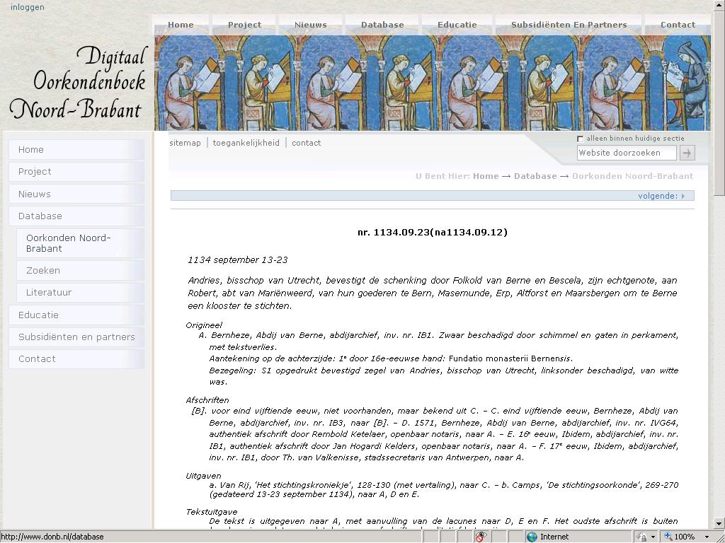 Op 17 november 2010 is de website van het Digitaal Oorkondenboek van Noord-Brabant (