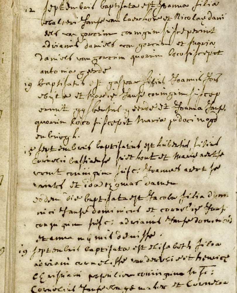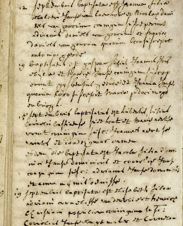 De volgorde van de doopinschrijvingen is 12,19,15 en 19 september. Wat kan er gebeurd zijn? Ik vermoed dat de dopen van de twee genoemde kinderen aanvankelijk op een los briefje zijn genoteerd. De data zijn in juli in het doopboek ingeschreven. De pastoor heeft vergeten het briefje weg te gooien. Op 19 september is de pastoor tussen twee dopen op die dag het briefje weer tegengekomen en heeft toen de twee dopen weer genoteerd met een gefingeerde doopdatum 15 september.