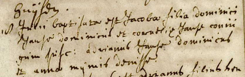Op 18 juli 1700 werd gedoopt: Jacoba de dochter van Dominicus Janse Dominicus en Cornelia Janse: