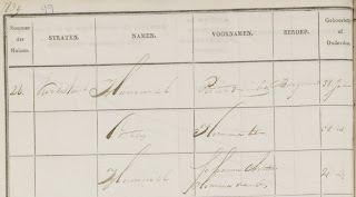Waarschijnlijk is dit hetzelfde huis als waar hij in 1825 woonde, hoewel het huisnummer anders is. Als we aannemen dat burgemeester Pieter van den Hummel zowel in 1825 als in 1839 in hetzelfde huis woonde blijkt dat er inderdaad een omnummering heeft plaatsgehad. In 1825 woonde Pieter van den Hummel oud 44 jaar aan de Kerkstraat 20 (inv. nr. 6):