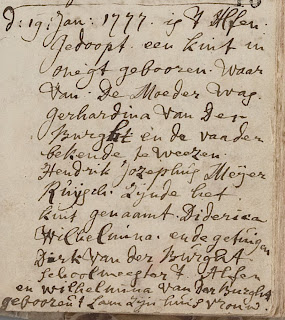 Uit het doopboek van Alphen blijkt dat het kind op 19 januari 1777 aldaar is gedoopt (DTB 8 Alphen en Riel, scan 17):