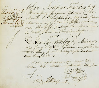 Op 19 september 1803 trouwden te Tilburg: Johan Matthias Frankenhoff en Arnolda Castelijns (DTB 52 Tilburg scan 42):