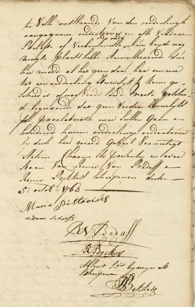 Het gebeurt zelden, dat doopextracten van bruidegom én bruid bewaard zijn gebleven. Een van die zeldzame gevallen betreft het echtpaar Adam Schoofs en Maria Pistorius. Zij gaan voor de eerste keer in ondertrouw te Chaam op 24 september 1763, maar besluiten kort daarna van een huwelijk af te zien (DTB 9 Chaam scan 24):