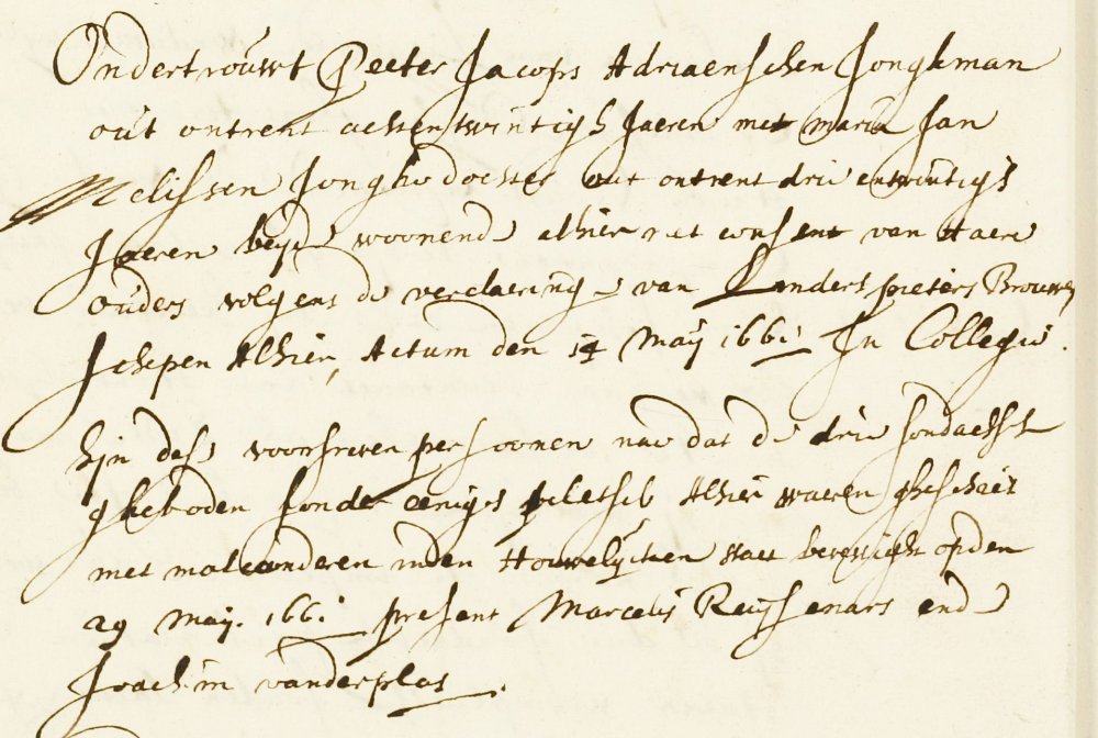 Op 29 mei 1661 vond er te Oosterhout een huwelijk plaats voor de schepenen, waarbij leeftijden worden vermeld (DTB 50 Oosterhout scan 5):