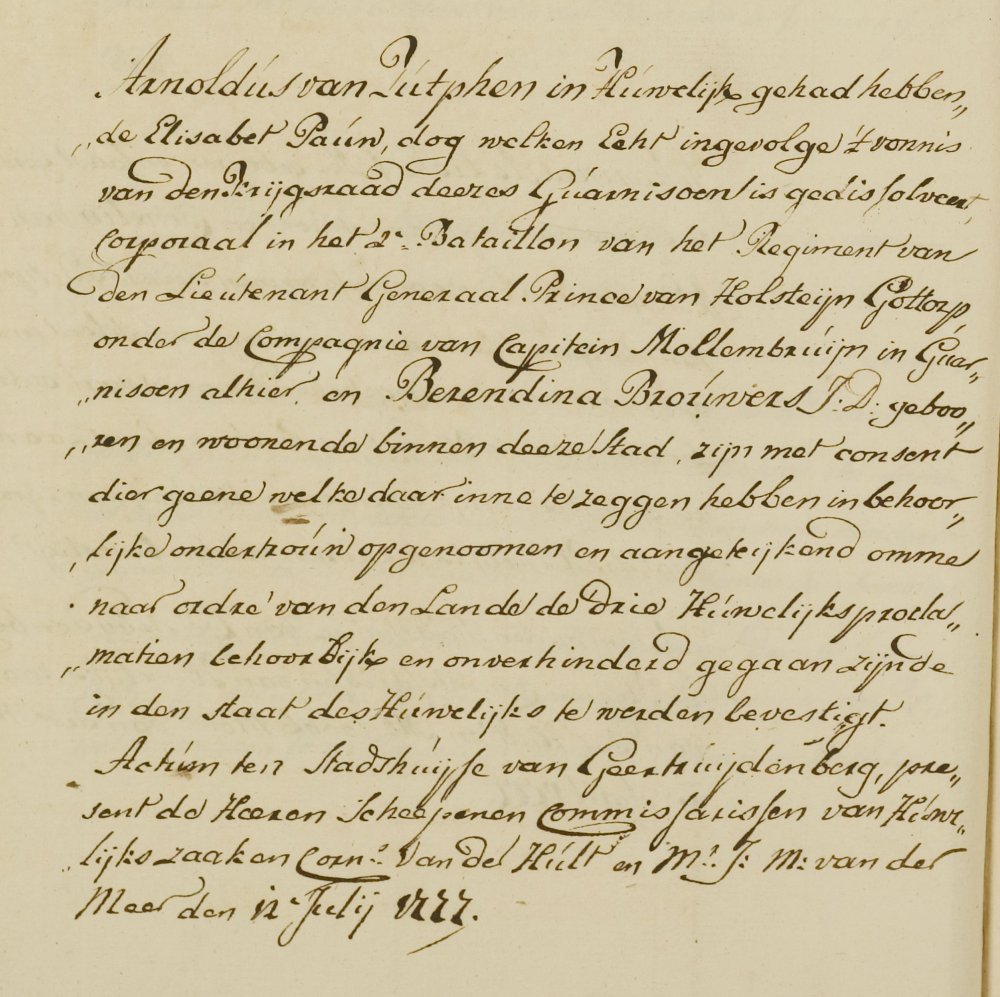 In 1777 trouwde Arnoldus van Zutphen in huwelijk gehad hebbende Elisabet Pauw welk huwelijk door echtscheiding is ontbonden, met Berendina Brouwers te Geertruidenberg (DTB 10 Geertruidenberg scan 51):