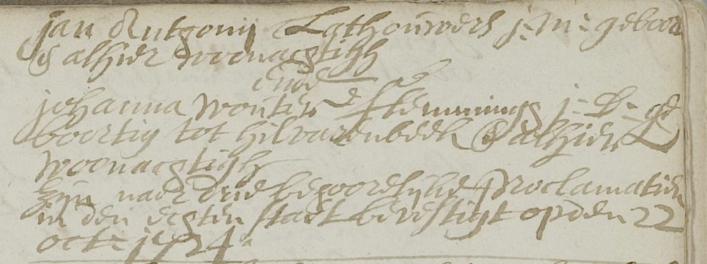 Jan Lathouwers heeft zijn vrouw in 1728 verlaten en is nooit bij haar teruggekeerd. Na enig onderzoek zien de schepenen van Hilvarenbeek geen bezwaar om haar tweede huwelijk te voltrekken op 21 oktober 1736 met Adriaan van Wijk (DTB 15 Hilvarenbeek scan 326):