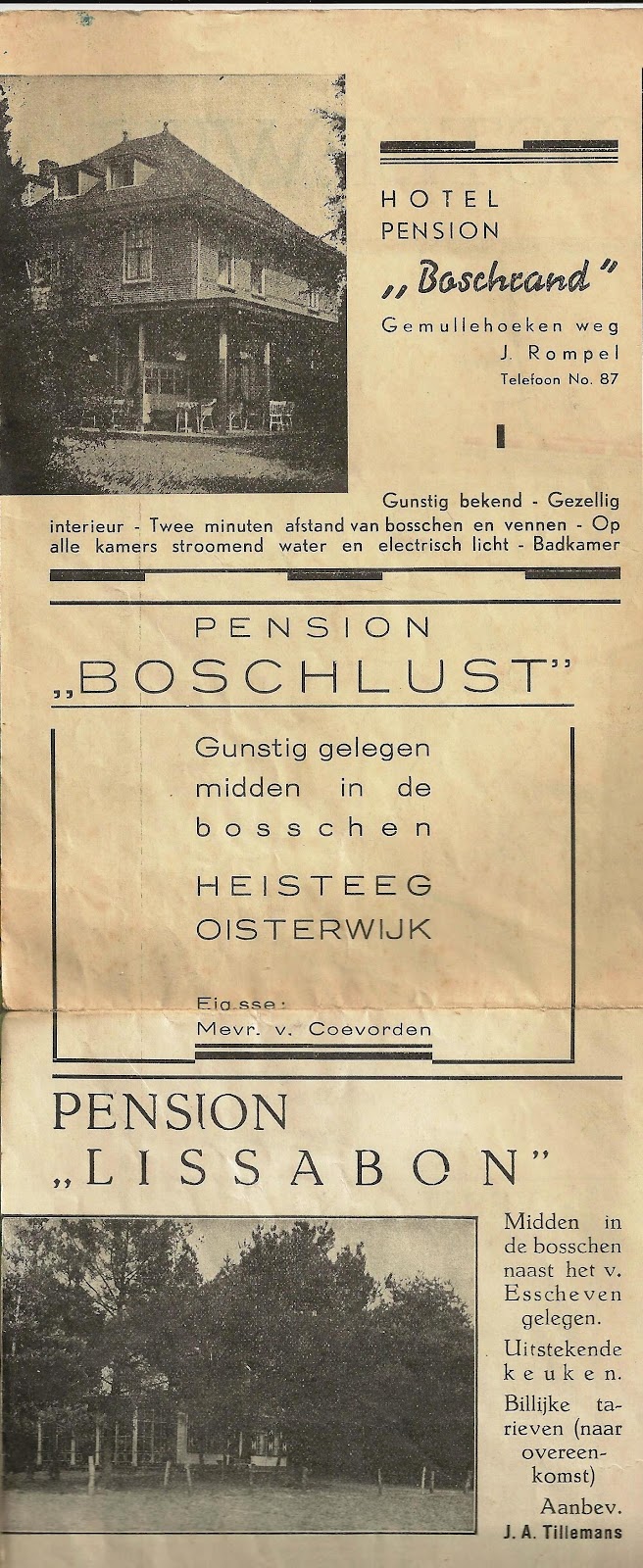 De reclame uit die tijd op de achterzijde van de kaart is illustratief voor die tijd. Pension