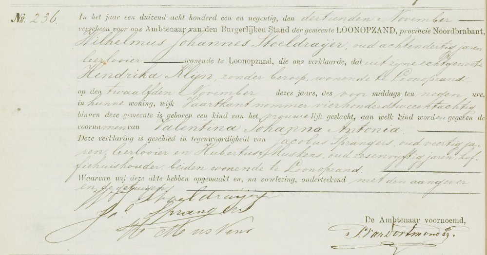 De laatste twee Valentina's, zusjes, zijn beiden te Loon op Zand geboren, respectievelijk op 22 april 1880 en 12 november 1891: