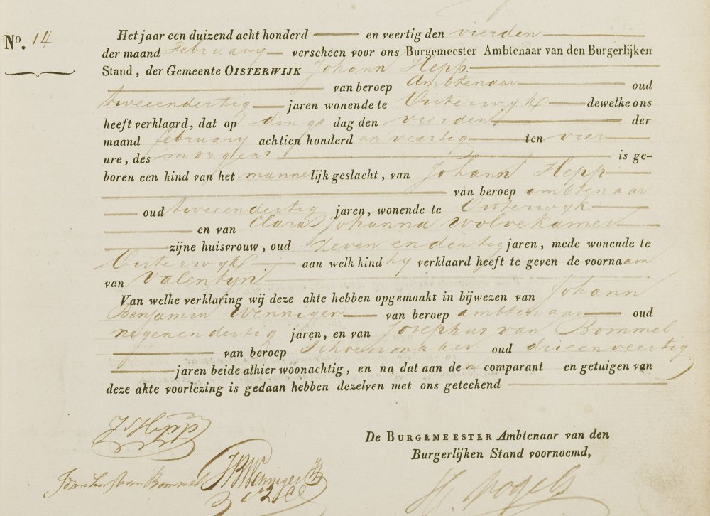 Dan duurt het bijna 30 jaar tot er, toevallig weer in Oisterwijk, een Valentijn wordt geboren (4 februari 1840):