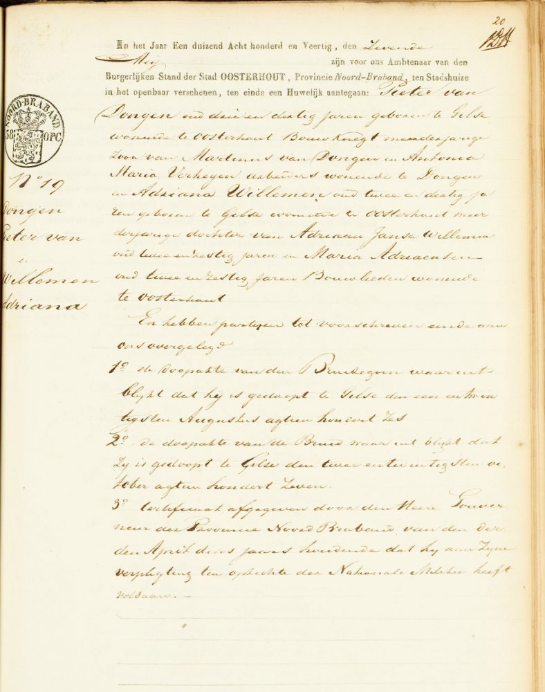 Het kan er af en toe vreemd aan toe gaan bij de burgerlijke stand, zoals de overlijdensakten van de gebroeders van Dongen in Dongen aantonen. De drie broers zijn allen in Gilze geboren, maar trouwen in verschillende plaatsen. Pieter trouwt op 7 mei 1840 te Oosterhout: