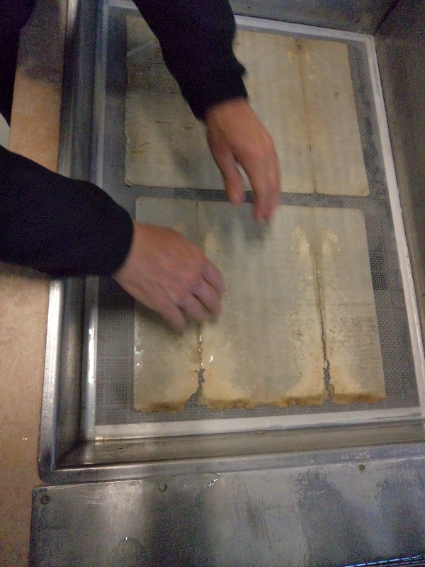 Spectaculair was de demonstratie van het aanvezelen van papier. Als argeloze bezoeker schrik je van het bijna brute geweld dat een oud beschreven document wordt aangedaan, onder watergezet, filter erop, lijmpasta erover, met enorme snelheid wordt het water weggezogen, filter verwijderd en wordt daarna het papier met liefde bedekt met Japans vloeipapier. Dat wordt aangedrukt, geperst, gedroogd en een dag later heeft het kwetsbare papier een nieuw leven gekregen.