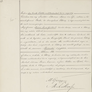 Het was niet haar laatste testament, want in de marge staat dat zij het testament heeft herroepen op 7 augustus 1898 en ook van dat testament is een scan beschikbaar (Notaris A.A.M. van Eijl, akte 198, scan 412, 7 augustus 1898):