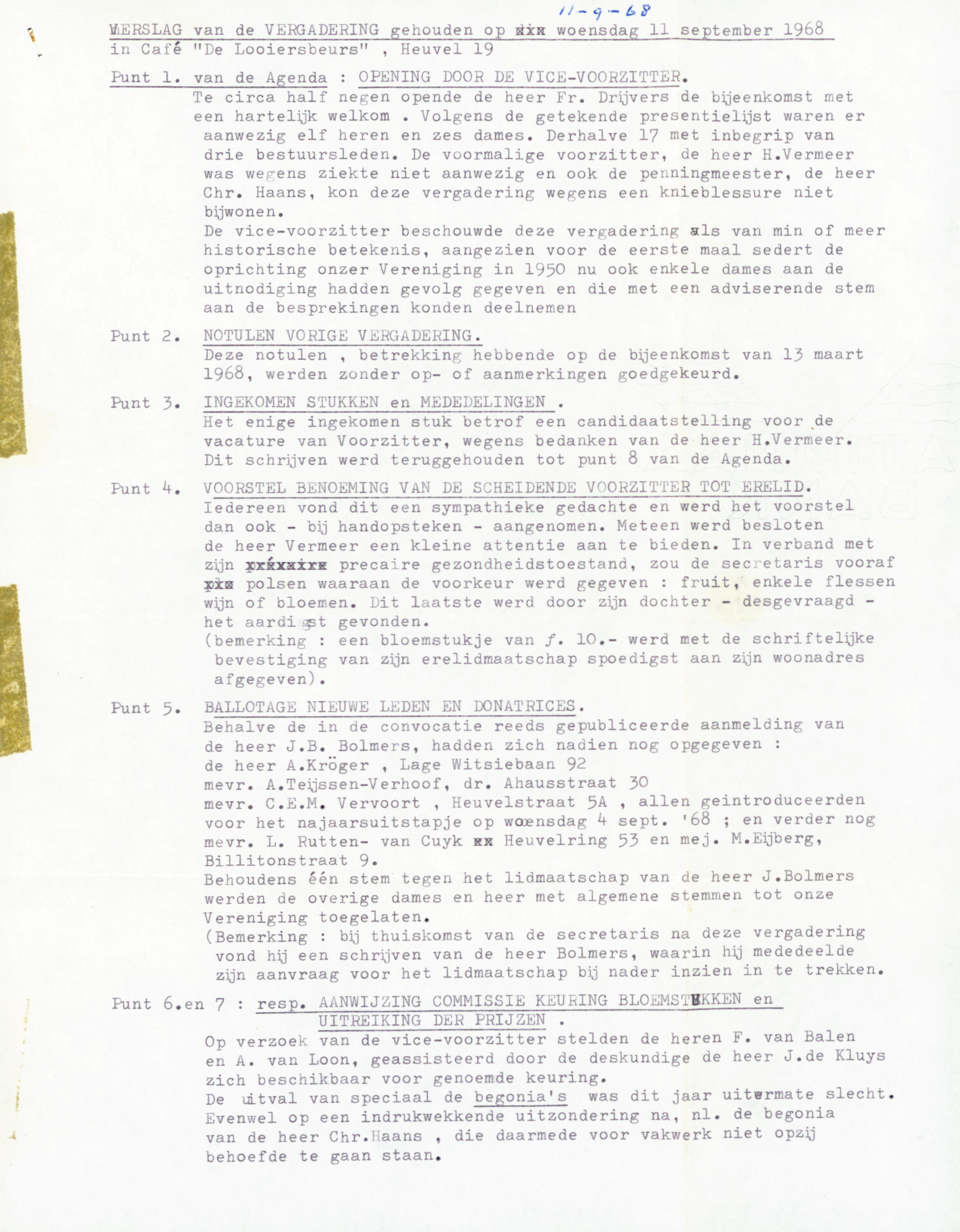 De notulen van de vergadering van 11 september 1968 zijn ook bijzonder. Die dag zijn er voor het eerst sinds de oprichting van de vereniging enkele dames aanwezig, ‘die met een adviserende stem aan de vergadering konden deelnemen’.