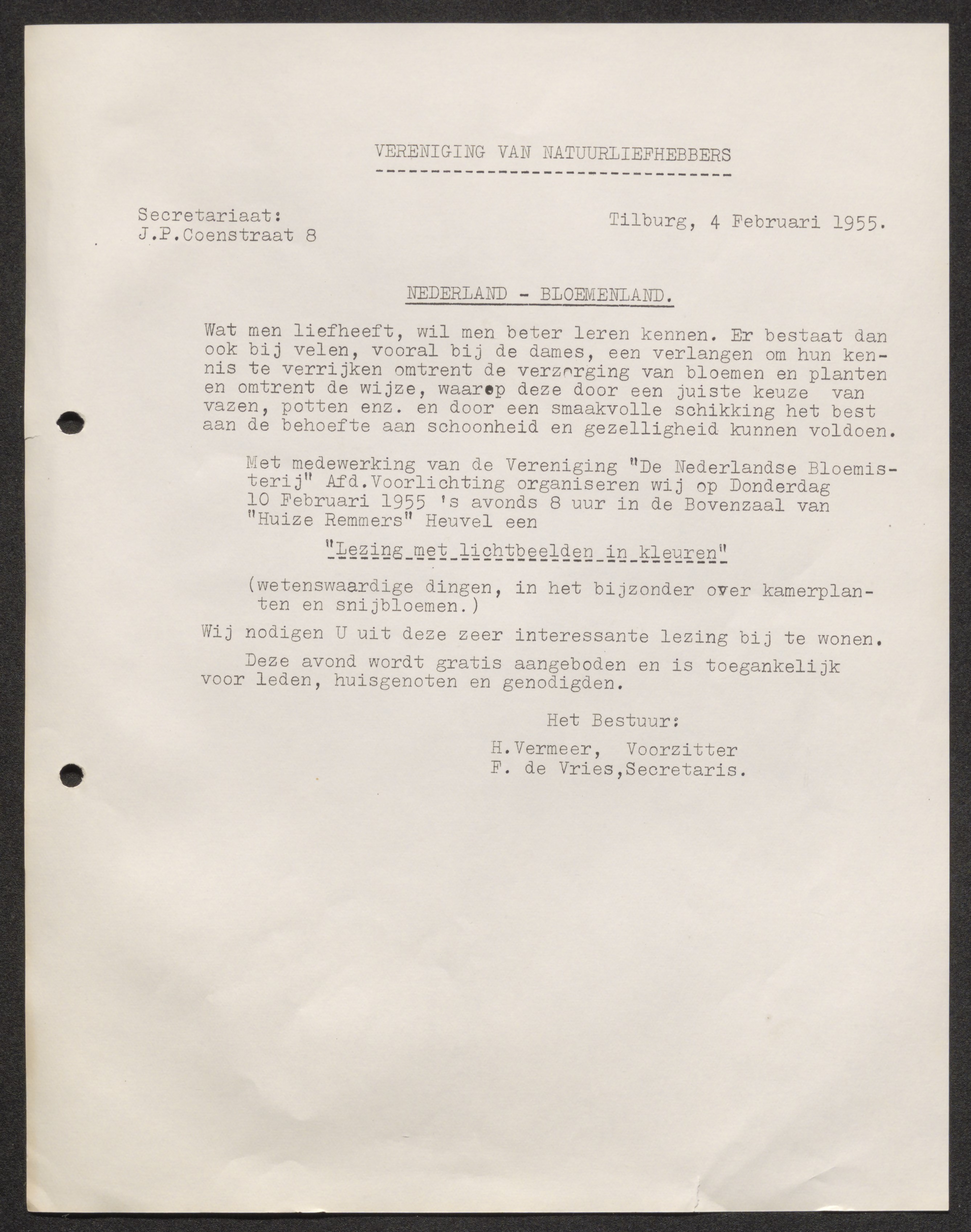 In de serie Frequently Forgotten Files (FFF) zetten we minder bekende, maar bijzondere archieven uit onze collectie in de schijnwerpers. In deze aflevering staat archief 252 Vereniging van natuurliefhebbers te Tilburg, 1950-1969 centraal.