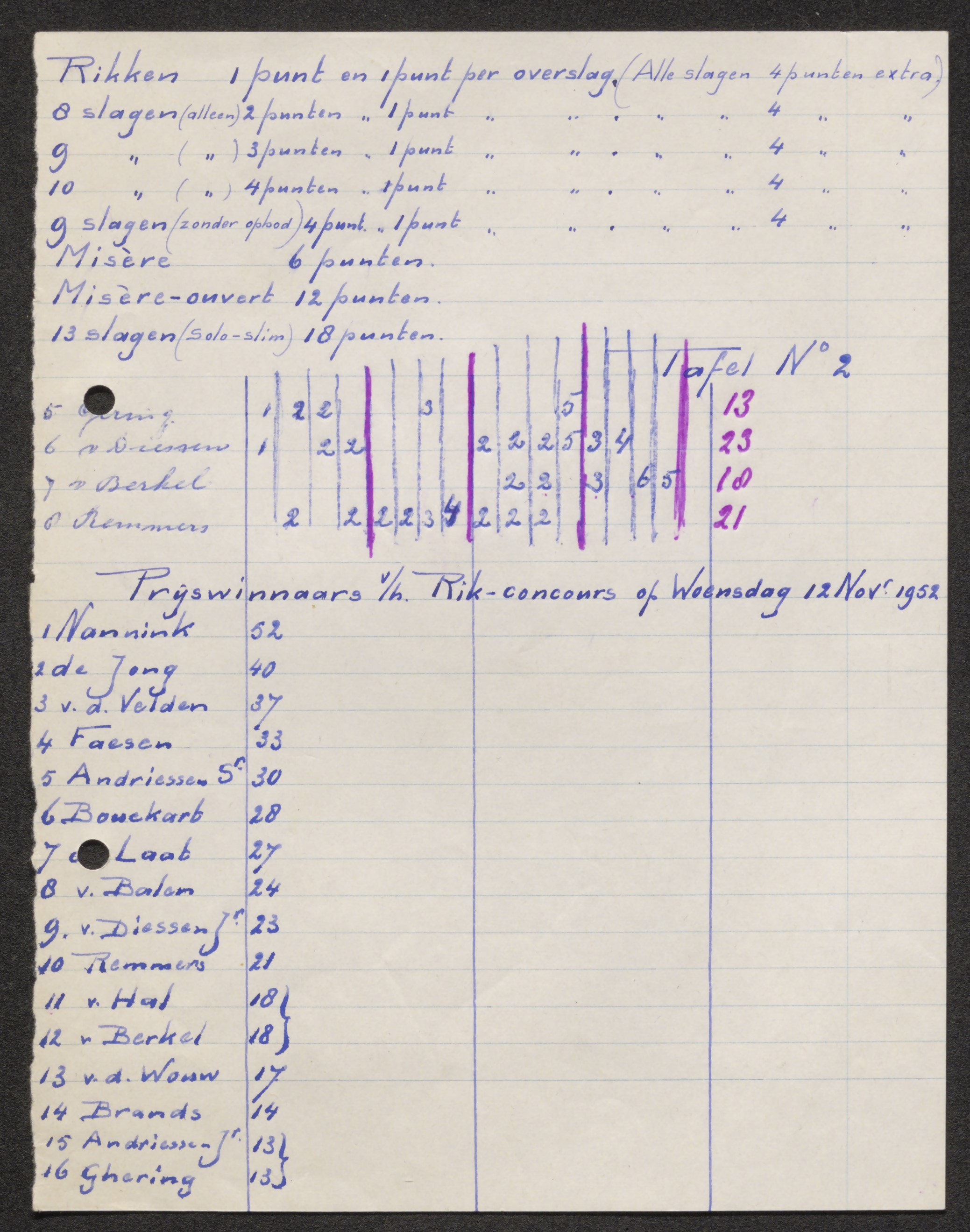 Bijzonder zijn ook de uitslagen van het rik-concours van 12 november 1952 en een uitnodiging voor een ‘lezing met lichtbeelden in kleuren’ op 10 februari 1955.